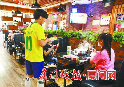 昨晚,哥斯达黎加对塞尔维亚的比赛刚好在晚餐时间。和林先生一样,资深球迷陈先生和朋友一起到斗西路的牛一潮汕火锅店就餐。“看世界杯一是热闹,二是分享。今年厦门不少餐厅都有很好的看球环境。”陈先生说,在餐厅看球,还可以与其他球迷一起交流,感觉很棒。