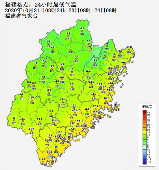 (南平光泽的最低气温只有6.6℃)