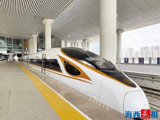 “复兴号”动车组首次在闽始发 金色车头和16节车厢