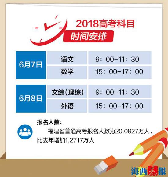 前两天教育部发布的通知公布了2018年高考全国统考科目的考试时间安排,即6月7日9:00-11:30语文;15:00-17:00数学;6月8日9:00-11:30文综(理综);15:00-17:00外语。
