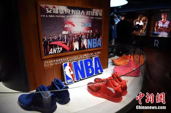 图为晋江安踏总部展示的安踏为NBA球星打造的球鞋。 张斌 摄