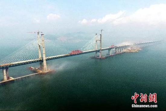 正在施工建设的平潭海峡公铁两用大桥。张斌 摄
