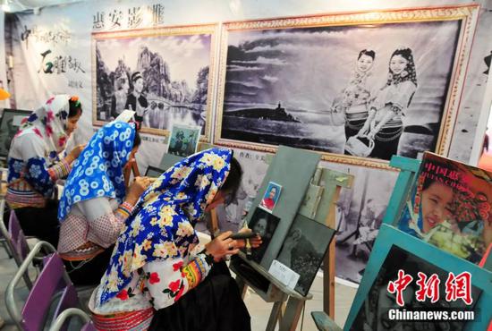 惠安女身穿惠女服饰,用粗细不同的各种微型钢钎,在磨得锃亮的青石板上精心雕琢,展示被誉为“中华一绝”的惠安影雕。张斌 摄