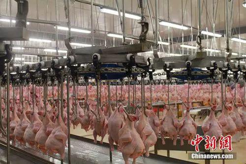 圣农全自动的肉鸡宰杀车间。(陈志鸿 张涛涛 摄)