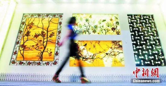 泉州石材体验馆里,雕刻透光艺术墙现代感十足。 王柏峰 摄