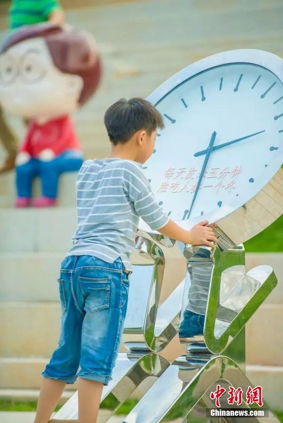 位于漳州南山文化生态园发呆处的发呆造型时钟。漳州市钟表同业公会供图