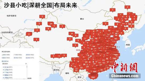 沙县小吃全国分布图。图片源自沙县小吃官网