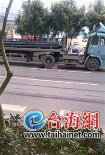 昨日早上6:05许,201省道漳州台商投资区角美龙池灿坤2号门附近路段,一名过马路的行人,遭一辆大货车辗轧,当场死亡。