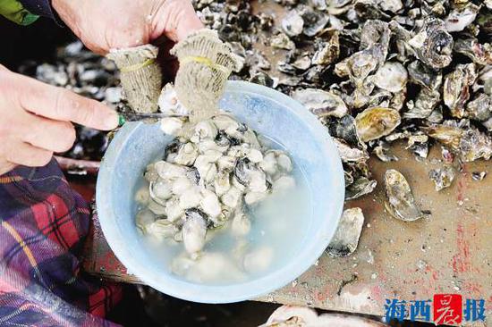 “海蛎从去年十一月开始采摘,到今年五六月就会结束。这期间我们每天都会来剥海蛎。”今年70多岁的林阿婆告诉晨报记者,在琼头村,不少老人家喜欢剥海蛎赚点零花钱。在海蛎肥美的时候,只需要剥三四十个海蛎就有一斤,而海蛎较瘦时,要剥一百个左右才有一斤。每剥一斤海蛎的工钱是1.5元至2元,手法娴熟的人一天可以剥三十多斤海蛎。