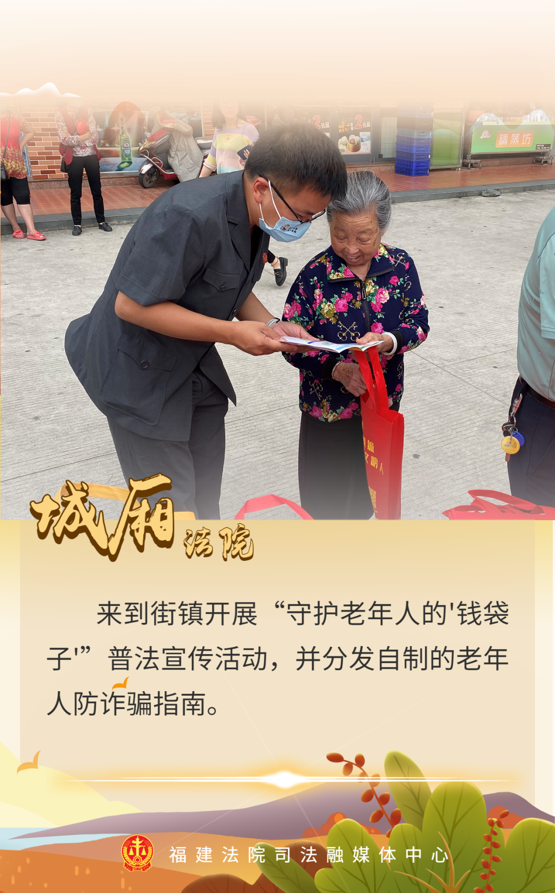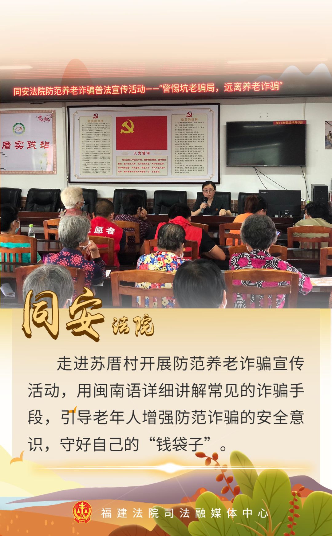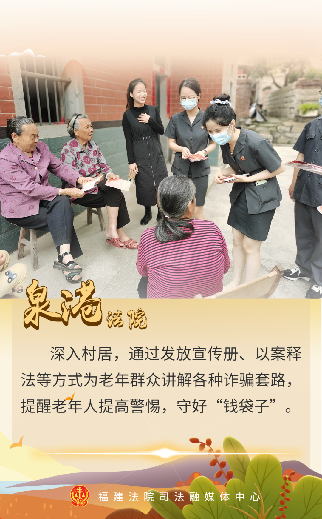打击整治养老诈骗专项行动开展以来福建法院掀起强大攻势在抓好执法办案的同时组织干警深入开展反诈宣传活动切实守好老年人的“