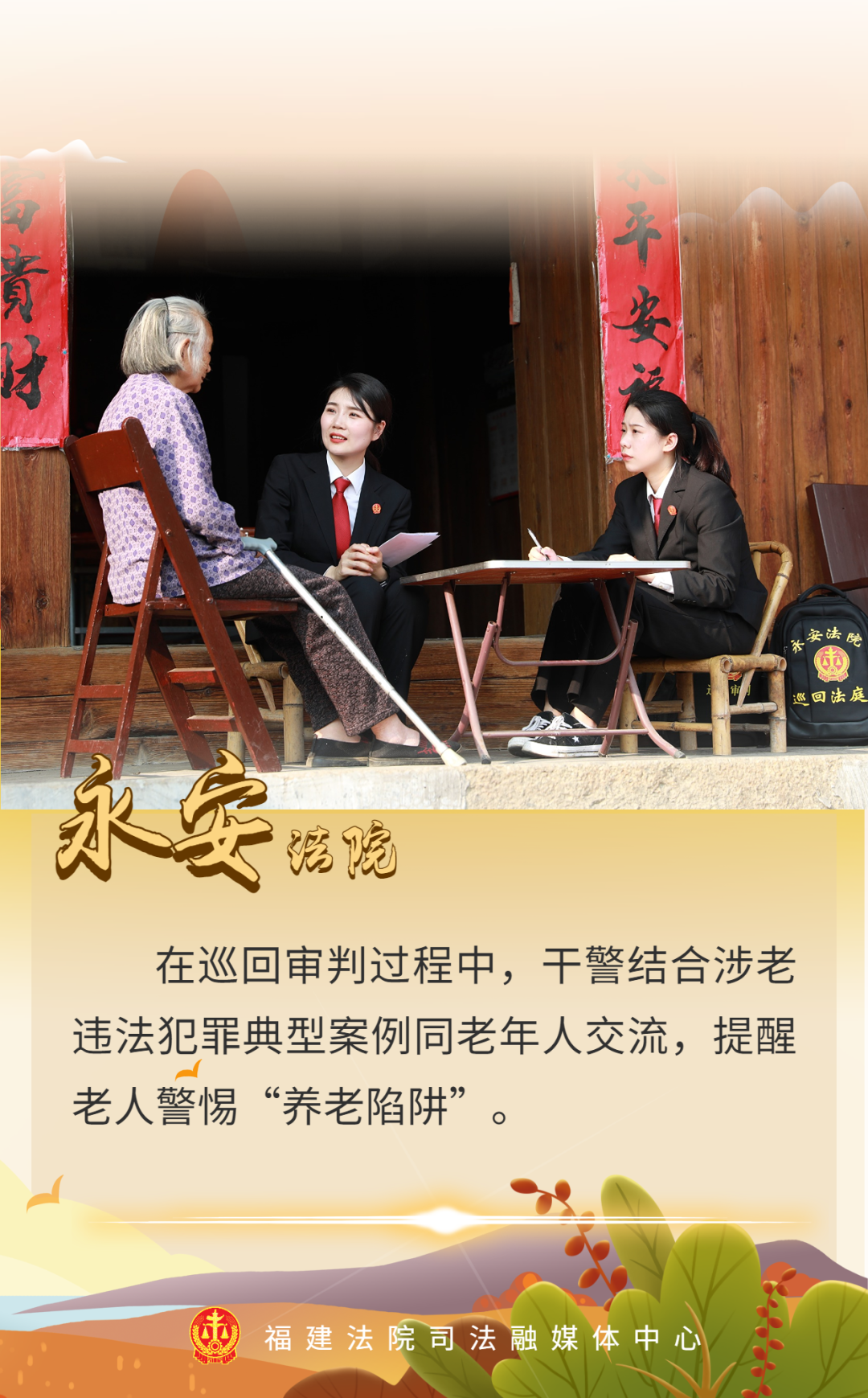 ”下面就跟着小编一起来看一组照片感受福建法院打击整治养老诈骗的力度与温度吧 责任编辑:罗晓榕