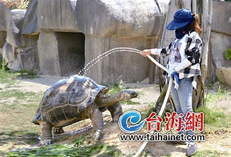 鳄鱼园区边上,还有一个大家伙——圆滚滚的大龟。小卢说,大龟学名叫做亚达伯拉象龟。这只大象龟体重300多斤,已73岁高龄。
