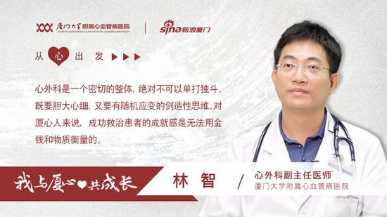 2001年,伴随着改革开放和厦门经济特区建设的强劲步伐,厦门大学附属心血管病医院(厦门市心脏中心,简称”厦心“)成立了。历经十几年的发展,厦心以独有的“厦门速度”赢得多方赞誉,成为区域内特别有影响力的心血管病专科医院。时值改革开放四十周年,厦心与新浪厦门联合推出《从“心”出发——我与厦心共成长》人物故事专题,用“厦心人”的故事讲述厦心的成长历程,感受卫生事业的发展。今天带您走进林智医生:“他胆大心细,又有随机应变的创造性思维。对他来说,成功救治患者的成就感是无法用金钱和物质衡量的。”