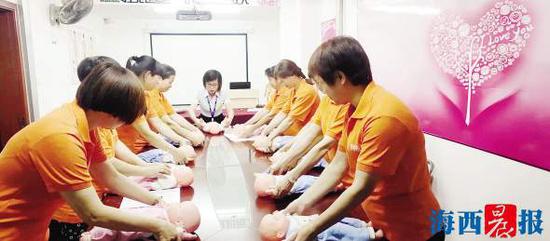 厦门阿布屋家政服务有限公司的月嫂正在接受培训。