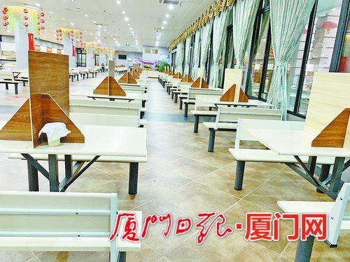 厦大教职工前天起陆续开工,昨天,厦大勤业等食堂正式开业,采用了“防疫模式”,除了体温测量外,入口处还有可以给手消毒的机器,用餐采取一人一桌的方式,有些餐桌则设置了隔板,饭菜也改用套餐形式。