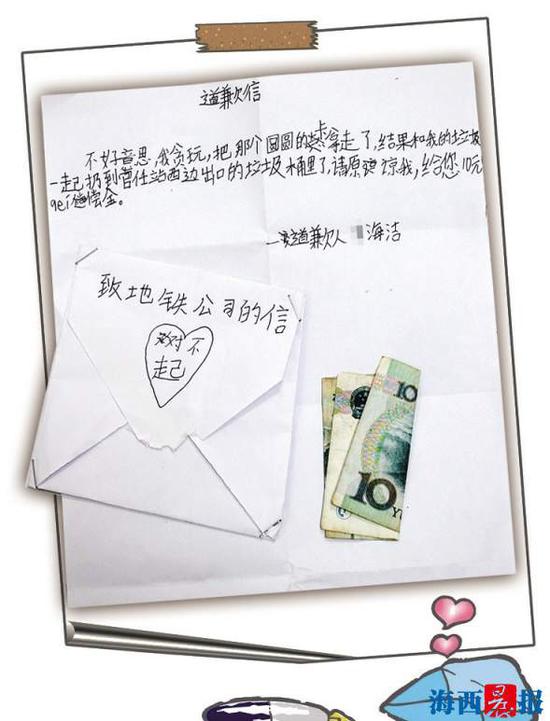 厦门:孩子弄丢地铁票 寄来道歉信及赔偿款:请原谅我