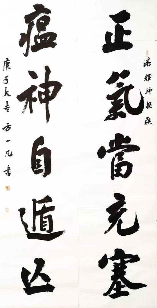 释文:力挽狂澜,武汉雄心冲碧汉;誓除厉疫,江城壮志铸长城。