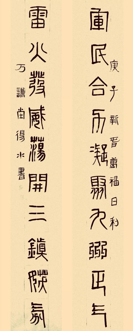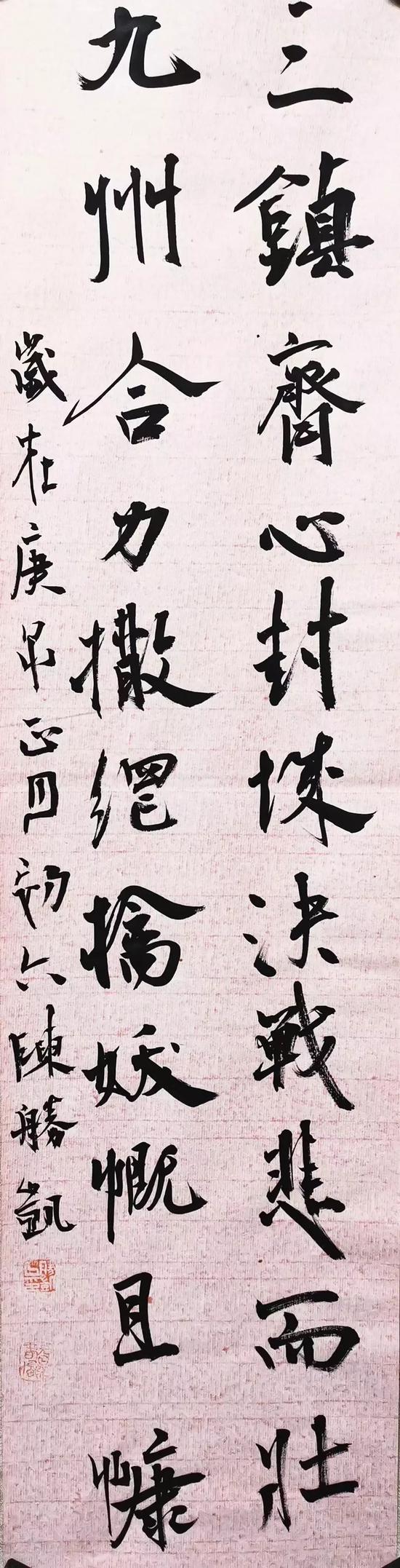 释文:军民合力,凝聚九州正气;雷火发威,荡开三镇妖氛。