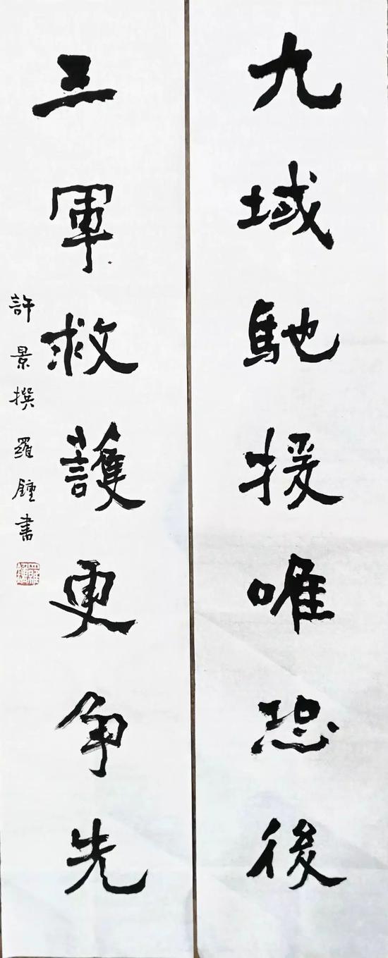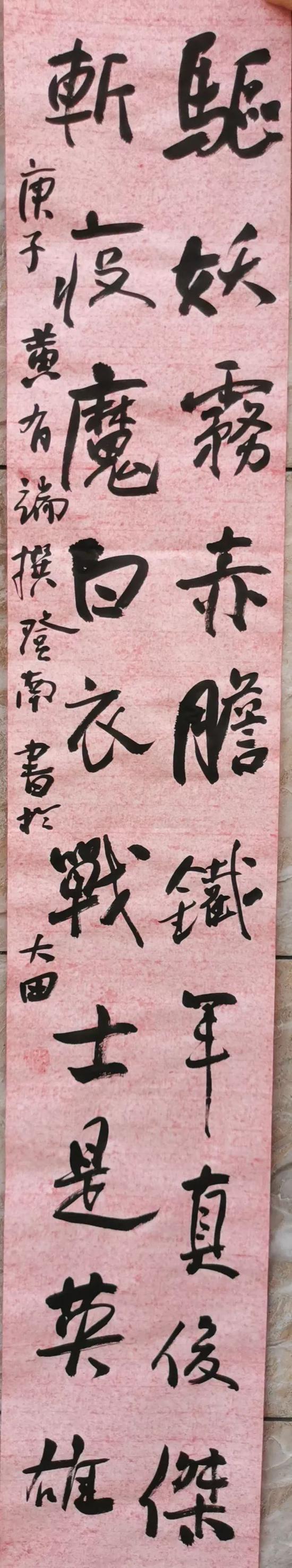 释文:驱妖雾,赤胆铁军真俊杰;斩疫魔,白衣战士是英雄。