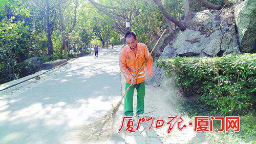 吴金理告诉记者,十七年前,他打工的水泥厂发生一起意外事故夺去了他的左手小臂,但他并未因此放弃了对生活的信心。“虽然我缺一只手臂,但是身子还能动,我绝不能成为家人的负担。”怀抱着这种信念,2013年,吴金理从安溪老家出发,踏上了来厦务工之路。几经辗转,他成了金榜公园的一名环卫工人。