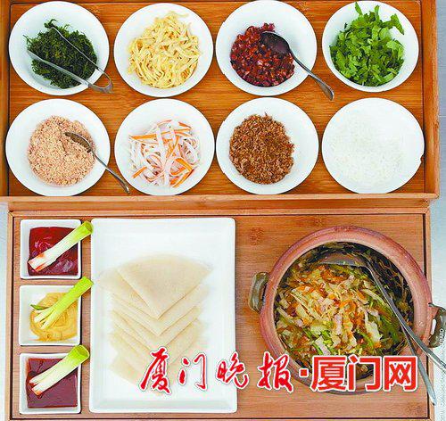 他说,做薄饼贵在坚持,比如最重要的馅料,要选新鲜的。在厦门,他选的虾是狗虾,包菜也尽量选本地的,比如同安的。这样,厦门薄饼才能呈现地道的厦门味。胡萝卜、笋等也是当季最新鲜的食材,另外要加大骨汤,这样出来的味道才最鲜美爽口。