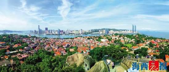 从鼓浪屿日光岩望去,一片郁郁葱葱。记者 唐光峰 摄