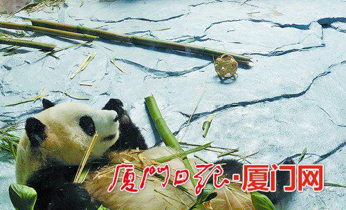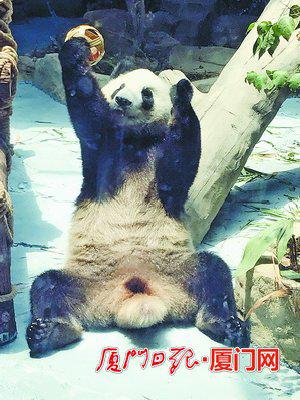 大熊猫双胞胎第一次在厦过生日 吃起蛋糕玩自拍