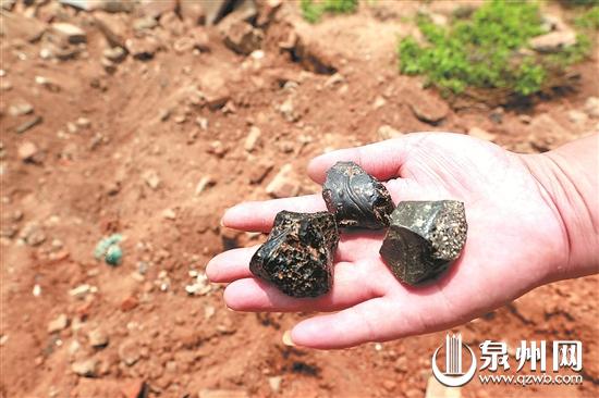 泉州洛江双阳工地挖出“黑宝石” 引村民争“寻宝”