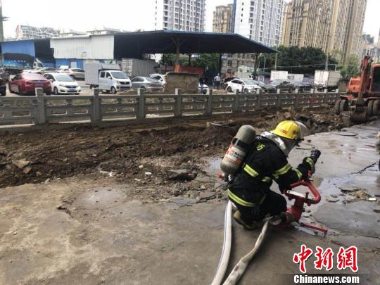 福州一工地发生燃气管道泄漏事故 消防官兵紧急排险