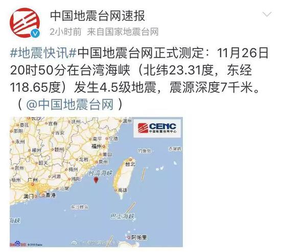 二11月26日 08时15分 三11月26日 10时55分 四11月26日 20时50分 五11月26日 21时24分 刚刚中国地震台网速报最新消息