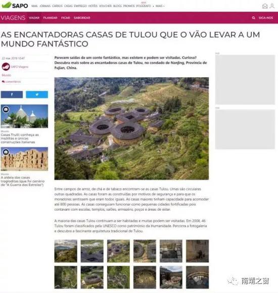 除此之外,葡萄牙最大门户网站SAPO近日也发布了一组福建土楼的照片。
