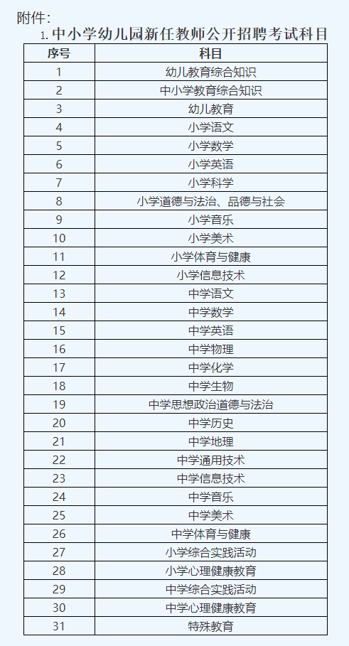 2。笔试科目:上午笔试科目为“专业知识”,共设29个科目类别,由应聘人员根据本人所报考岗位类别选择其中一个科目类别参加考试;下午笔试科目为“教育综合知识”,该科目是每位应聘人员必考科目。