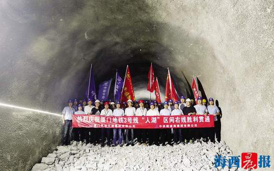 厦门网讯 (海西晨报 记者 雷妤 通讯员 李琳)厦门地铁3号线建设有了新进展———昨日上午10时,伴随着人才中心站—湖里公园站区间隧道右线最后一声爆破,地铁3号线岛内段最长矿山隧道贯通。这是地铁3号线控制性工程之一,它的贯通为全线洞通奠定了基础。