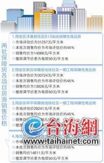 保障性商品房的销售均价,按各项目房源市场评估价的45%确定。其中,翔安新店地铁社区13826元/平方米、同安祥平地铁社区12708元/平方米、海沧马銮湾地铁社区14611元/平方米、翔安区洋唐居住区B13地块14066元/平方米。