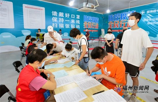 福州新闻网7月28日讯(福州日报记者 林文婧/文 见习记者 沐方婷 石美祥/摄)28日,福州市新增的新冠疫苗大型集中接种点台江区万象九宜城(麦当劳前下沉广场负一层)投用,首日便迎来华侨中学1500名学生。