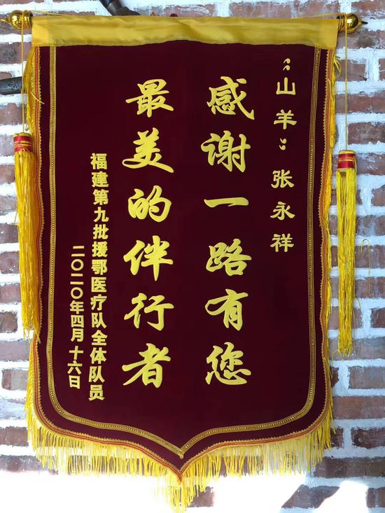 福建省第九批援鄂医疗队全体队员为张永祥送上锦旗。