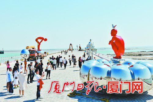 科考码头雕塑展。(朱毅力张天骄摄)厦门网讯 (厦门日报 记者 王元晖 通讯员 林瑞声 余庆东)澳头渔港特色小镇闹热了一整天。怀远湖畔红砖古厝的燕尾脊屋檐下,昨日涌来了数千位宾客。这些慕名而来的人中,不少是海内外知名的艺术家。“陈文令”这个名字,成了昨日他们微信朋友圈里的热词。由翔安区委宣传部和新店镇人民政府主办的面朝大海·超旷澳头文化艺术季暨“有限与无限”陈文令当代艺术展昨天下午在翔安区新店镇澳头拉开帷幕。