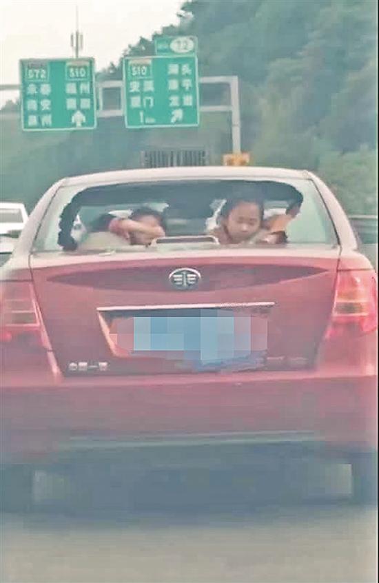 昨日,一段视频在微信上热传,视频所录的主体是一部在高速路上行驶的红色小车,小车的后挡风玻璃破损没了,坐在小车后座的两个小孩朝着车尾的方向趴着,两人似乎在玩着什么,头都探了出来。