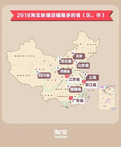 另外,根据淘宝日前发布的数据,广东、浙江、江苏已是连续十年成为淘宝新增店铺最多的三个省份,而河南、山东、福建在去年新增淘宝店数量分列第4到第6。在去年新增淘宝店最多的城市排行中,广州、深圳、上海、北京、杭州居前5名,我省的泉州紧随其后,位列第6位。