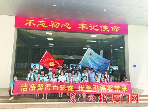 “I-环保”暑假社会实践队还制作了“洁净留得白鹭在 优美引得客常来”的横幅,开元街道的居民、党员们纷纷在横幅上签上自己的名字,作为“践行垃圾分类、守护美丽厦门”的承诺。