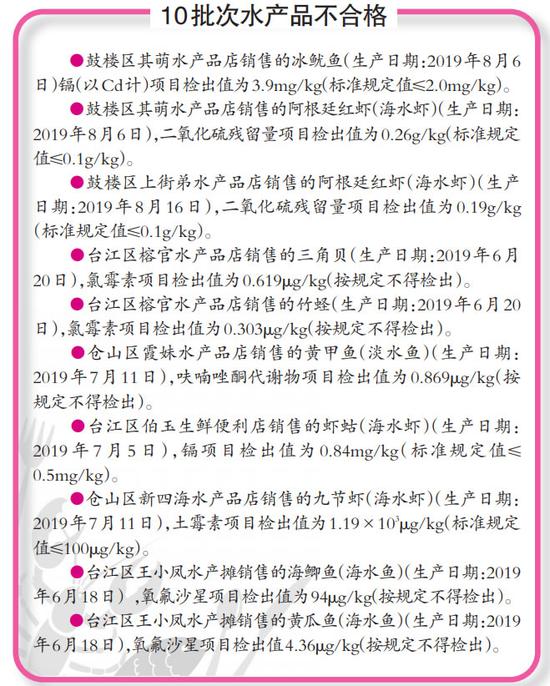 福州:16批次食品抽检不合格 其中10批次为水产品