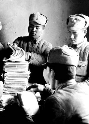 历史图片:在华日本人反战同盟成员正在编发反战宣传品。新华社 发