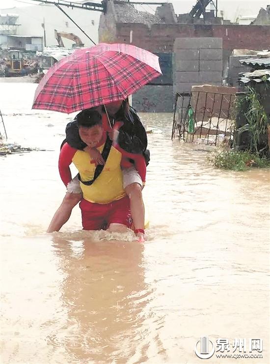 2016年,台风“莫兰蒂”侵袭泉州,杨维维救出被困群众。(资料图片)