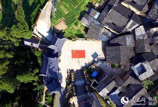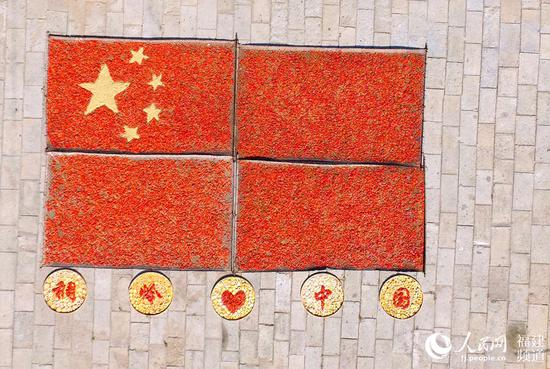 福建政和稠岭村“晒秋”:辣椒、玉米拼国旗庆国庆