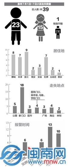 泉州市公安局110指挥中心统计,7月1日到昨天,仅7天时间,泉州警方已接到39起小孩走失的警情,平均一天约5.6个。这比平常多了近一倍。暑期到了,熊孩子们喜欢乱跑,家长们可得多注意点。