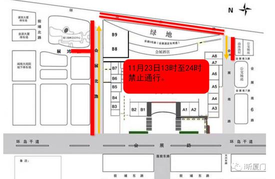 ■会展北路会展路路口至环岛东路路口段实行由西往东(即会展路往环岛东路方向)单向通行,禁止车辆由东向西行驶;