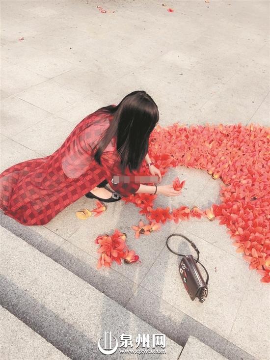 泉州网4月8日讯 (记者陈小芬)一阵风吹过,枝头上红艳艳的木棉花飘落一地,将地板点缀得很美丽!一对年轻姐妹见到这样的美景,忍不住捡起地上的木棉花,摆起“心花”,引来众多路人欣赏拍照。这场景出现在4月5日泉州市区中山公园门口。