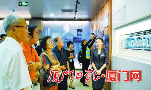 开馆后的第一批参观者仔细参观珍贵照片。厦门日报记者林路然