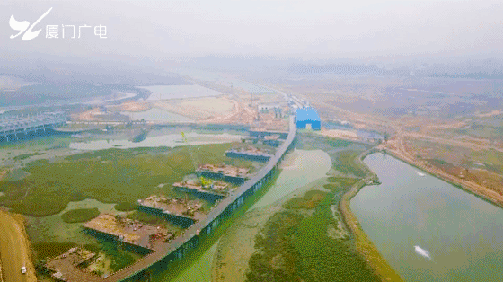 从现场看到,安海湾特大桥已完成东引桥及主桥所有下部结构施工,引桥桥面系及附属结构同步施工中。