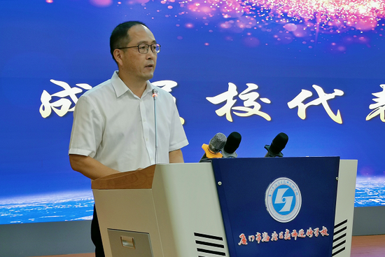 紧密型教育共同体(教育集团)成员校校长代表——海沧区第二实验小学书记、校长吴志坚发言。